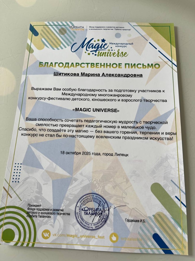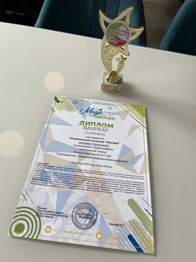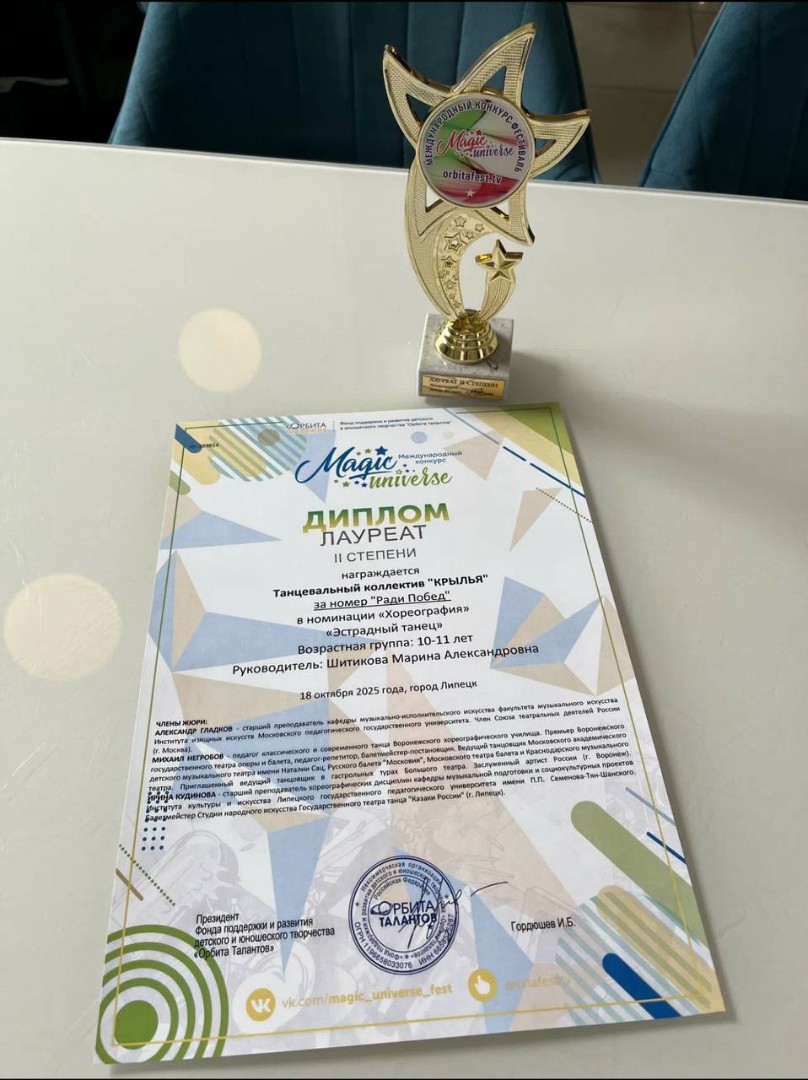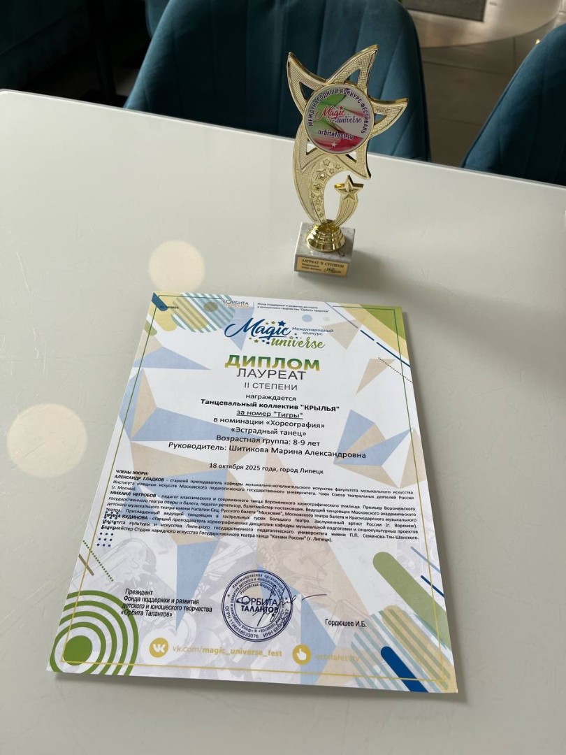 18 октября 2025 года наш замечательный коллектив с номерами «Тигры», «Круче всех» и «Ради Побед» под руководством Шитиковой Марины Александровны стал лауреатом II степени на Международном конкурсе Magic Universe!