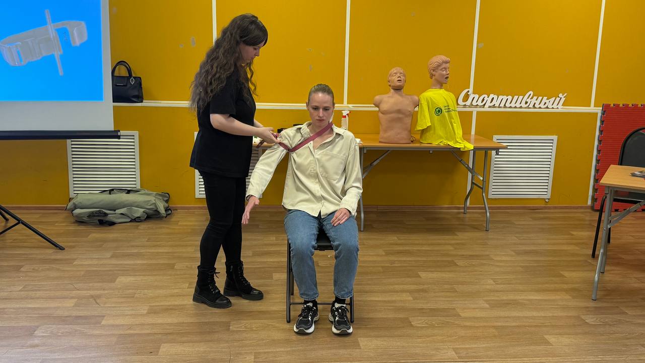 Практическую часть провела ведущий преподаватель Центра последипломного образования Алина Сергеевна Емельянова, продемонстрировав ключевые навыки оказания первой помощи.