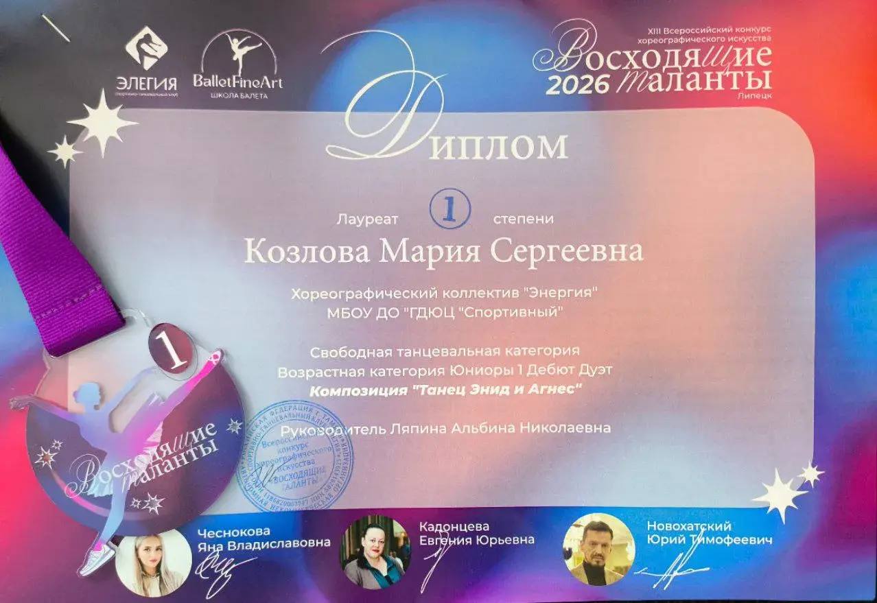 28 февраля танцевальный коллектив «Энергия» (рук. Ляпина Альбина Николаевна) принял участие в XIII Всероссийском конкурсе хореографического искусства «ВОСХОДЯЩИЕ ТАЛАНТЫ 2026», который проходил в Городском дворце культуры.