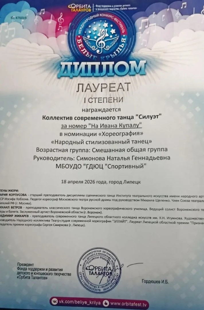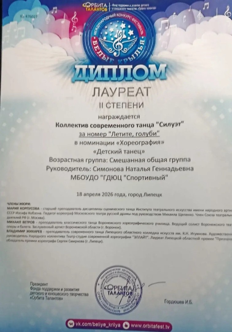 На Международном многожанровом конкурсе-фестивале «Белые крылья» (г. Липецк) наши танцоры стали лауреатами I и II степени!